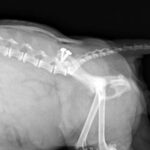 13歳のマルチーズちゃんが骨盤骨折で来院されました。ロッキングプレートを使用した仙腸関節安定化術(TAITAN1.7と1.5)で固定する手術を行いました。術後元気に歩けるようになりました。よかったね。