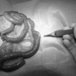 吐き気が続いて、元気・食欲がないワンちゃんが来院されました。超音波検査で異物による小腸閉塞が疑われましたので緊急手術となりました。腸を切開し異物を摘出し、無事手術は終了、元気に退院していきました。よかったね。