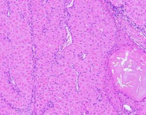 ワンちゃんが体調不良で来院されました。エコー検査で脾臓に大きな腫瘤が見つかったため飼い主様とご相談ののち摘出手術となりました。脾臓の病理組織検査の結果は「骨髄脂肪腫」で良性した。無事元気に退院しました。良かったね。