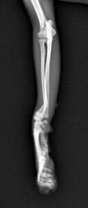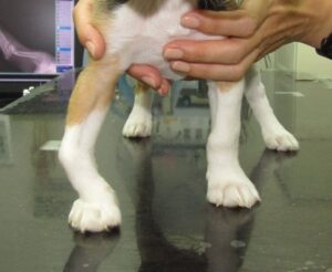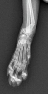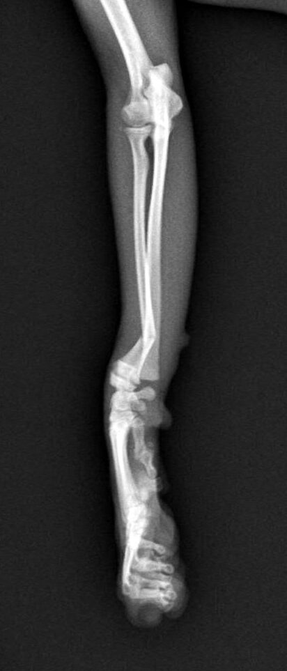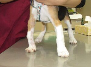 子犬さんの前足変形の精査希望でご紹介がありました。レントゲンでは異常所見なく、carpal laxity syndrome疑いで外固定による治療を行いました。3か月後にはキレイに治りました。よかったね。