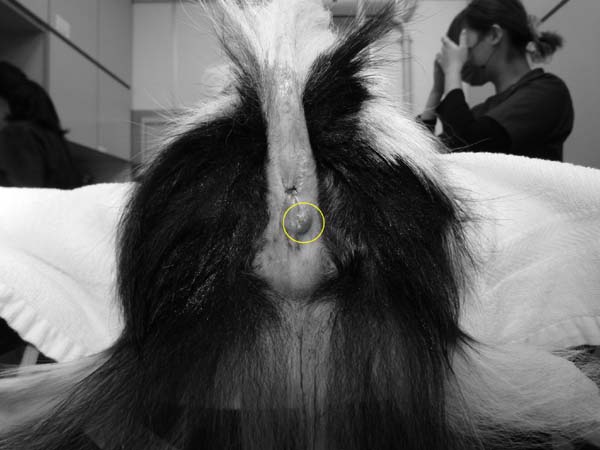 5~6歳以上の去勢手術をしていないオス犬に多い病気ですが、メス犬や去勢した犬に起こることもあります。お尻の筋肉が萎縮した結果、筋肉の隙間から直腸や膀胱が皮膚の下にとびでてしまいます。これにより便が出にくくなったり膀胱炎になったりします。手術をすることで機能回復および今後の致死的な状況を回避することができます。当院では去勢手術→結腸固定→前立腺固定→骨盤隔膜構成筋の縫縮→内閉鎖筋フラップ→浅臀筋フラップの順で通常腹側・臀部左右両側同時に行います。また老化以外に、筋肉が萎縮する原因があったり、腹圧がかかる原因があったりする場合も多いので、再発防止のためそれらの診断・治療も重要です。今回のワンちゃんも無事手術も終わり元気に退院しました。よかったね。