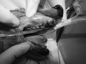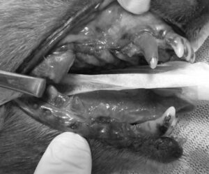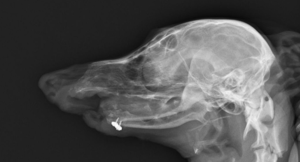 ワンちゃんが歯周病の治療希望で来院されました。重度歯周病のため骨壊死により下顎先端の骨は溶けてしまっていたためロッキングプレートによる再建を行いました。無事元気に退院しモリモリ食べれるようになりました。よかったね。