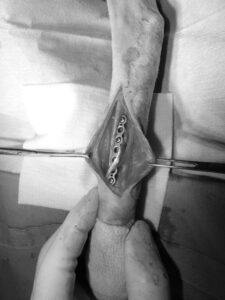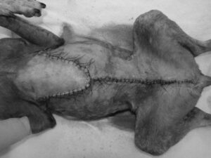 手術の様子です。骨髄移植も併用しました。順調に回復し元気に歩けるようになり、ご紹介元の先生にお返しできました。良かったです。