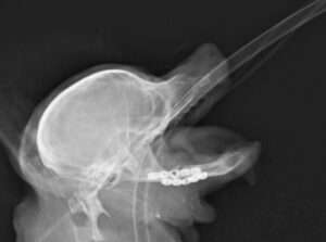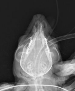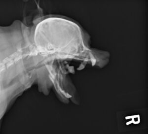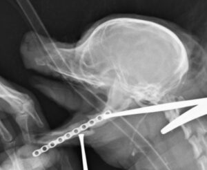 重度の歯周病で両側の下顎の病的骨折をしているワンちゃんが来院されました。悪い歯の抜歯と下顎のプレート固定(TITAN LOCK1.2mm使用)で対応しました。退院後しっかりご飯が食べられるようになりました。よかったね。